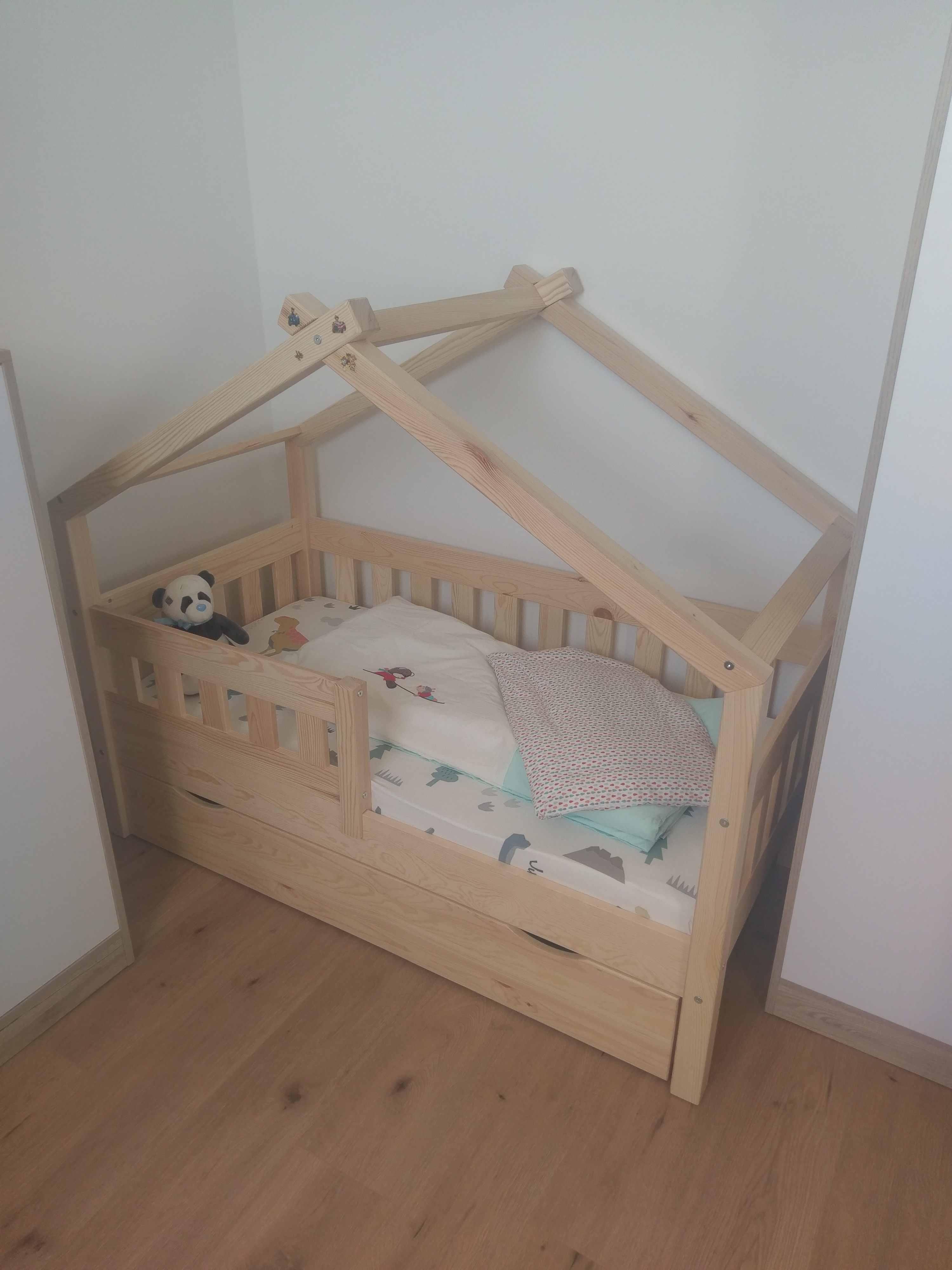 Optimales Design für ein Holzbett für das Kinderzimmer - eine gute Entscheidung für jedes Haus. Freude an der Benutzung garantiert.Dieses Bett aus Holz ist ein Highlight im Kinderzimmer. Es bietet einen fantasievollen Ort für Kinder, um ihre Kreativität auszuleben und überzeugt durch hohe Qualität.MAßE: Das Kinderbett ist passend für Matratzen 160 x 80 cm und hat eine Höhe von 134 cm. Die detaillierten Größen der einzelnen Teile sind auf den Fotos angegeben.MATERIAL: Das Spielbett für Kinder besteht aus natürlichem KiefernholzLIEFERUMFANG: Spielbett, Montageanleitung, Montagematerial, 2x Schubladen, Matratze.Das Hausbett ist mehr als nur ein Kinderbett aus Holz. Es ist ein Spielbereich und eine Quelle der Inspiration. Hier kann Ihr Kind seine Fantasie und Kreativität entfalten und in eine Welt voller Abenteuer eintauchen. Mit seinen zwei Schubladen und einer Matratze bietet dieses Holzbett für Kinderzimmer auch praktischen Stauraum. Es ist ein Highlight im Kinderzimmer und zieht alle Blicke auf sich. Das Bett ist von hoher Qualität und in verschiedenen Ausführungen und zusätzlichen Veredelungen erhältlich. Das Hausbett ist das perfekte Spielbett für Kinder und ein gemütlicher Ort zum Schlafen. Gönnen Sie Ihrem Kind dieses unverwechselbare Design und schaffen Sie ein Zuhause, in dem es sich wohlfühlt und sein eigenes Reich erkunden kann.---Technische Details:Farbe:NaturholzAbmessungen:80 x 133.6 x 160 cm (BxHxT)Material:Holz (Kiefer)Artikelgewicht:47.13 kg.Artikelgewicht inkl. Verpackung:50.1 kg.---LIEFERUMFANG: Spielbett, Montageanleitung, Montagematerial, 2x Schubladen, Matratze.Die Möbelserie "Design" bietet Spielbetten in Hausform für Kinder. Mit einer Vielzahl von Farbkombinationen und verschiedenen Konfigurationsoptionen bietet sie eine breite Auswahl an Möglichkeiten. Gestalten Sie den Schlafbereich Ihres Kindes mit den vielfältigen Optionen der Serie "Design" und schaffen Sie eine spielerische und gemütliche Umgebung.
