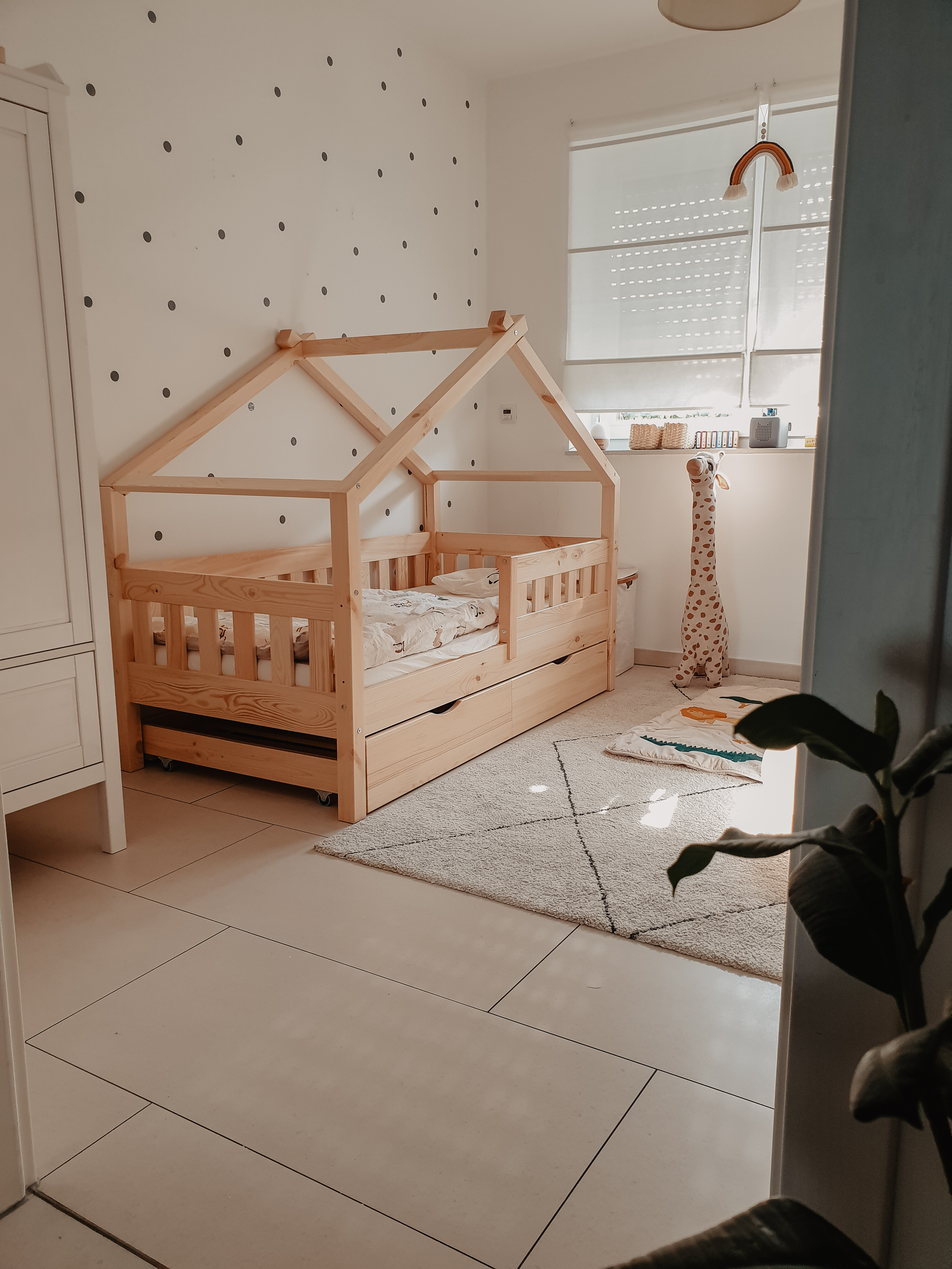 Mega cool ist auch das Ausziehbett was im Moment bei uns noch für zusätzlichen Stauraum sorgt und bald für Übernachtungspartys. Aber das Bett ist nicht nur optisch schön sondern auch echt Robust und war einfach aufzubauen. Wir sind sehr zufrieden mit unser Wahl