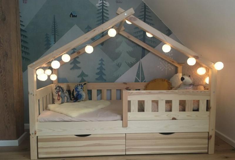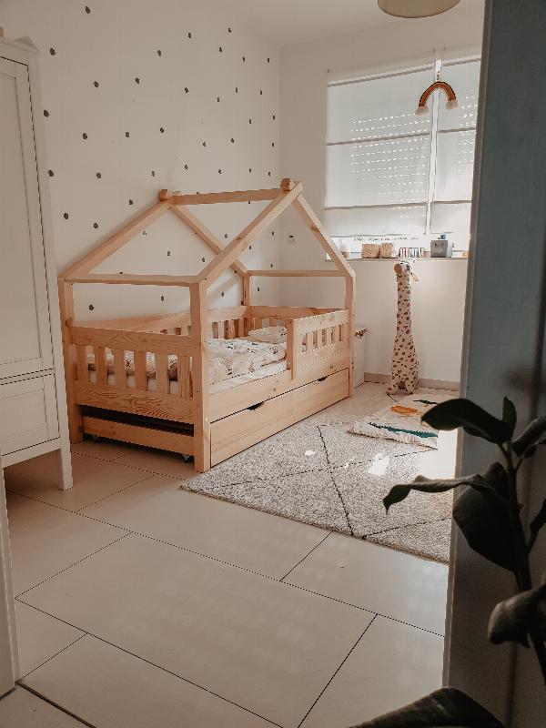 Optimales Design für ein Holzbett für das Kinderzimmer - eine gute Entscheidung für jedes Haus. Freude an der Benutzung garantiert.Dieses Bett aus Holz ist ein Highlight im Kinderzimmer. Es bietet einen fantasievollen Ort für Kinder, um ihre Kreativität auszuleben und überzeugt durch hohe Qualität.MAßE: Das Kinderbett ist passend für Matratzen 160 x 80 cm und hat eine Höhe von 134 cm. Die detaillierten Größen der einzelnen Teile sind auf den Fotos angegeben.MATERIAL: Das Spielbett für Kinder besteht aus natürlichem KiefernholzLIEFERUMFANG: Spielbett, Montageanleitung, Montagematerial, 2x Schubladen, Matratze.Das Hausbett ist mehr als nur ein Kinderbett aus Holz. Es ist ein Spielbereich und eine Quelle der Inspiration. Hier kann Ihr Kind seine Fantasie und Kreativität entfalten und in eine Welt voller Abenteuer eintauchen. Mit seinen zwei Schubladen und einer Matratze bietet dieses Holzbett für Kinderzimmer auch praktischen Stauraum. Es ist ein Highlight im Kinderzimmer und zieht alle Blicke auf sich. Das Bett ist von hoher Qualität und in verschiedenen Ausführungen und zusätzlichen Veredelungen erhältlich. Das Hausbett ist das perfekte Spielbett für Kinder und ein gemütlicher Ort zum Schlafen. Gönnen Sie Ihrem Kind dieses unverwechselbare Design und schaffen Sie ein Zuhause, in dem es sich wohlfühlt und sein eigenes Reich erkunden kann.---Technische Details:Farbe:NaturholzAbmessungen:80 x 133.6 x 160 cm (BxHxT)Material:Holz (Kiefer)Artikelgewicht:47.13 kg.Artikelgewicht inkl. Verpackung:50.1 kg.---LIEFERUMFANG: Spielbett, Montageanleitung, Montagematerial, 2x Schubladen, Matratze.Die Möbelserie "Design" bietet Spielbetten in Hausform für Kinder. Mit einer Vielzahl von Farbkombinationen und verschiedenen Konfigurationsoptionen bietet sie eine breite Auswahl an Möglichkeiten. Gestalten Sie den Schlafbereich Ihres Kindes mit den vielfältigen Optionen der Serie "Design" und schaffen Sie eine spielerische und gemütliche Umgebung.