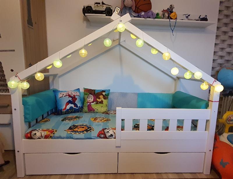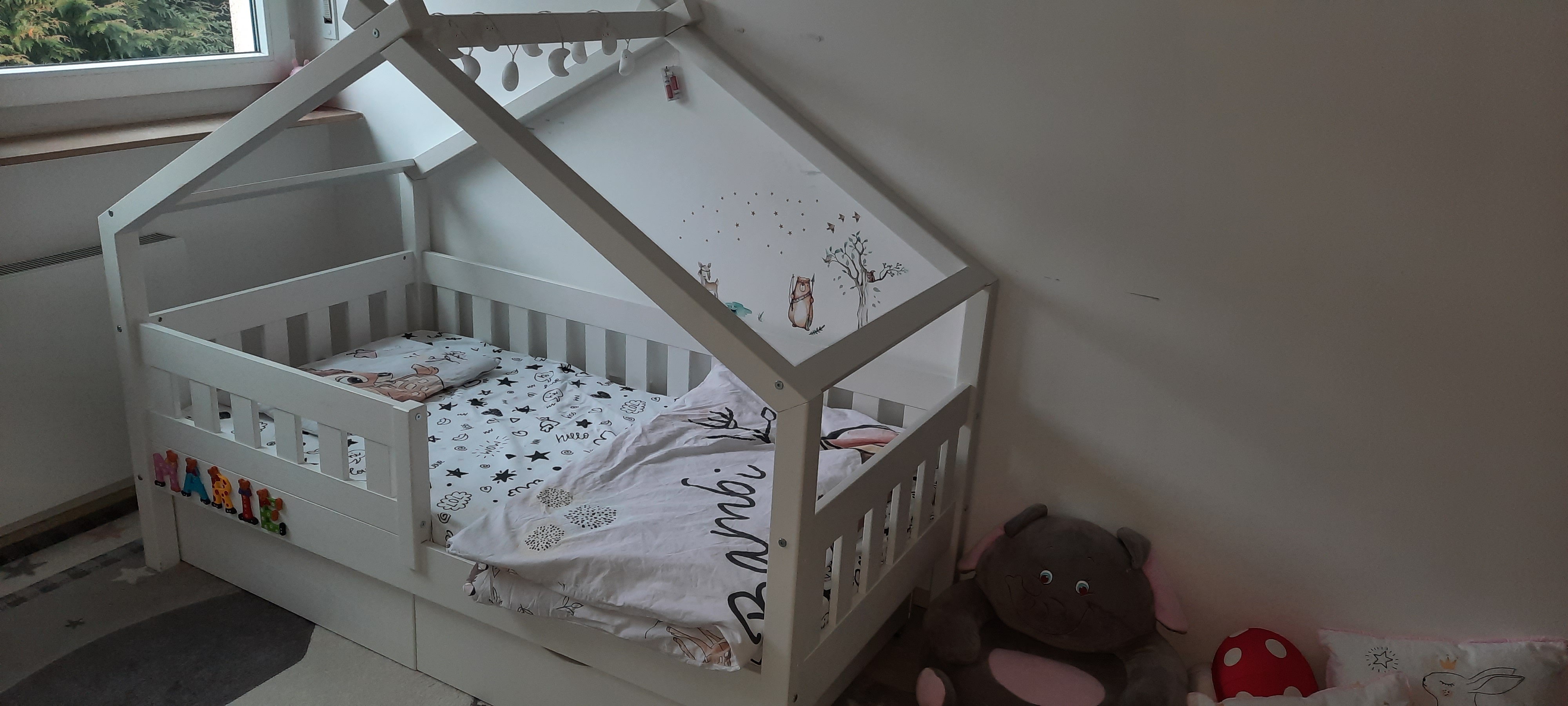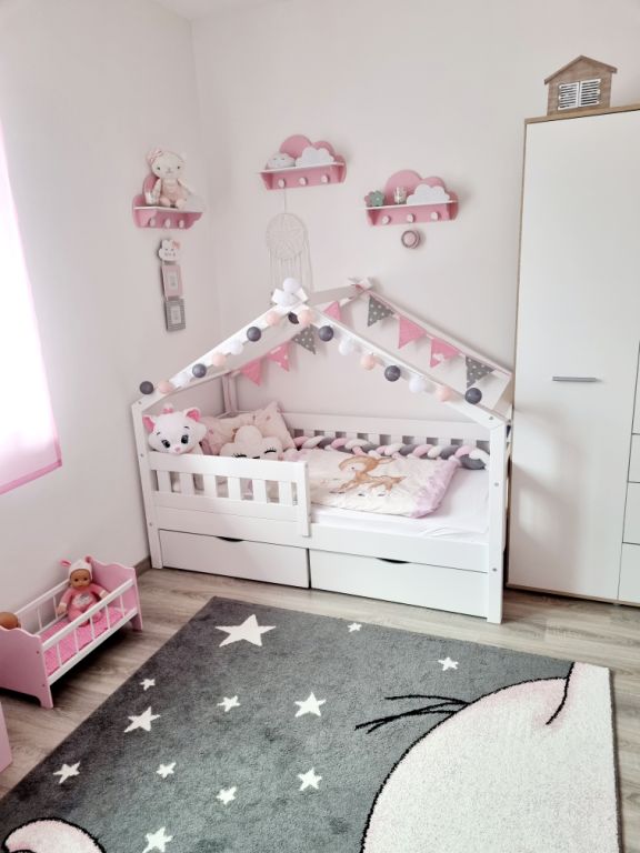 Optimales Design für ein Holzbett für das Kinderzimmer - eine gute Entscheidung für jedes Haus. Freude an der Benutzung garantiert.Dieses Bett aus Holz ist ein Highlight im Kinderzimmer. Es bietet einen fantasievollen Ort für Kinder, um ihre Kreativität auszuleben und überzeugt durch hohe Qualität.Maße: Das Kinderbett ist passend für Matratzen 160 x 80 cm und hat eine Höhe von 134 cm. Die detaillierten Größen der einzelnen Teile sind auf den Fotos angegeben.MATERIAL: Das Spielbett für Kinder besteht aus natürlichem KiefernholzLIEFERUMFANG: Hausbett, Montageanleitung, Montagematerial, 2x Schubladen.Das Hausbett ist mehr als nur ein Kinderbett aus Holz. Es ist ein Spielbereich und eine Quelle der Inspiration. Hier kann Ihr Kind seine Fantasie und Kreativität entfalten und in eine Welt voller Abenteuer eintauchen. Mit seinen zwei Schubladen bietet dieses Holzbett für Kinderzimmer auch praktischen Stauraum. Es ist ein Highlight im Kinderzimmer und zieht alle Blicke auf sich. Das Bett ist von hoher Qualität und in verschiedenen Ausführungen und zusätzlichen Veredelungen erhältlich. Das Hausbett ist das perfekte Spielbett für Kinder und ein gemütlicher Ort zum Schlafen. Gönnen Sie Ihrem Kind dieses unverwechselbare Design und schaffen Sie ein Zuhause, in dem es sich wohlfühlt und sein eigenes Reich erkunden kann.---Technische Details:Farbe:WeißAbmessungen:80 x 134 x 160 cm (BxHxT)Material:Holz (Kiefer)Artikelgewicht inkl. Verpackung:46 kg.Artikelgewicht:44.02 kg.---LIEFERUMFANG: Hausbett, Montageanleitung, Montagematerial, 2x SchubladenDie Möbelserie "Design" bietet Spielbetten in Hausform für Kinder. Mit einer Vielzahl von Farbkombinationen und verschiedenen Konfigurationsoptionen bietet sie eine breite Auswahl an Möglichkeiten. Gestalten Sie den Schlafbereich Ihres Kindes mit den vielfältigen Optionen der Serie "Design" und schaffen Sie eine spielerische und gemütliche Umgebung.