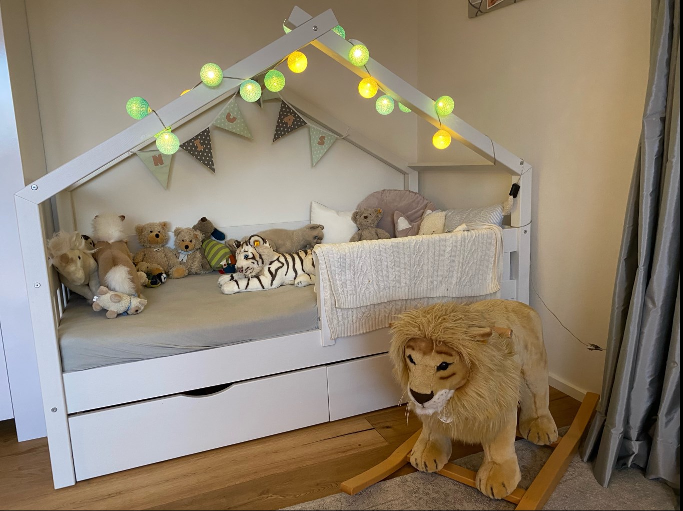 Die Schubladen bieten viel Platz und sind super für Bettwäsche oder, wer kennt es nicht, einfach um die vielen Kuscheltiere zu verstauen.