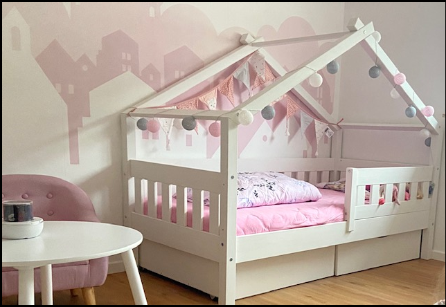Optimales Design für ein Holzbett für das Kinderzimmer - eine gute Entscheidung für jedes Haus. Freude an der Benutzung garantiert.Dieses Bett aus Holz ist ein Highlight im Kinderzimmer. Es bietet einen fantasievollen Ort für Kinder, um ihre Kreativität auszuleben und überzeugt durch hohe Qualität.MAßE: Das Kinderbett ist passend für Matratzen 160 x 80 cm und hat eine Höhe von 134 cm. Die detaillierten Größen der einzelnen Teile sind auf den Fotos angegeben.MATERIAL: Das Spielbett für Kinder besteht aus natürlichem KiefernholzLIEFERUMFANG: Spielbett, Montageanleitung, Montagematerial, 2x Schubladen, Matratze.Das Hausbett ist mehr als nur ein Kinderbett aus Holz. Es ist ein Spielbereich und eine Quelle der Inspiration. Hier kann Ihr Kind seine Fantasie und Kreativität entfalten und in eine Welt voller Abenteuer eintauchen. Mit seinen zwei Schubladen und einer Matratze bietet dieses Holzbett für Kinderzimmer auch praktischen Stauraum. Es ist ein Highlight im Kinderzimmer und zieht alle Blicke auf sich. Das Bett ist von hoher Qualität und in verschiedenen Ausführungen und zusätzlichen Veredelungen erhältlich. Das Hausbett ist das perfekte Spielbett für Kinder und ein gemütlicher Ort zum Schlafen. Gönnen Sie Ihrem Kind dieses unverwechselbare Design und schaffen Sie ein Zuhause, in dem es sich wohlfühlt und sein eigenes Reich erkunden kann.---Technische Details:Farbe:WeißAbmessungen:80 x 134 x 160 cm (BxHxT)Material:Holz (Kiefer)Artikelgewicht inkl. Verpackung:50.1 kg.Artikelgewicht:47.13 kg.---LIEFERUMFANG: Spielbett, Montageanleitung, Montagematerial, 2x Schubladen, MatratzeDie Möbelserie "Design" bietet Spielbetten in Hausform für Kinder. Mit einer Vielzahl von Farbkombinationen und verschiedenen Konfigurationsoptionen bietet sie eine breite Auswahl an Möglichkeiten. Gestalten Sie den Schlafbereich Ihres Kindes mit den vielfältigen Optionen der Serie "Design" und schaffen Sie eine spielerische und gemütliche Umgebung.