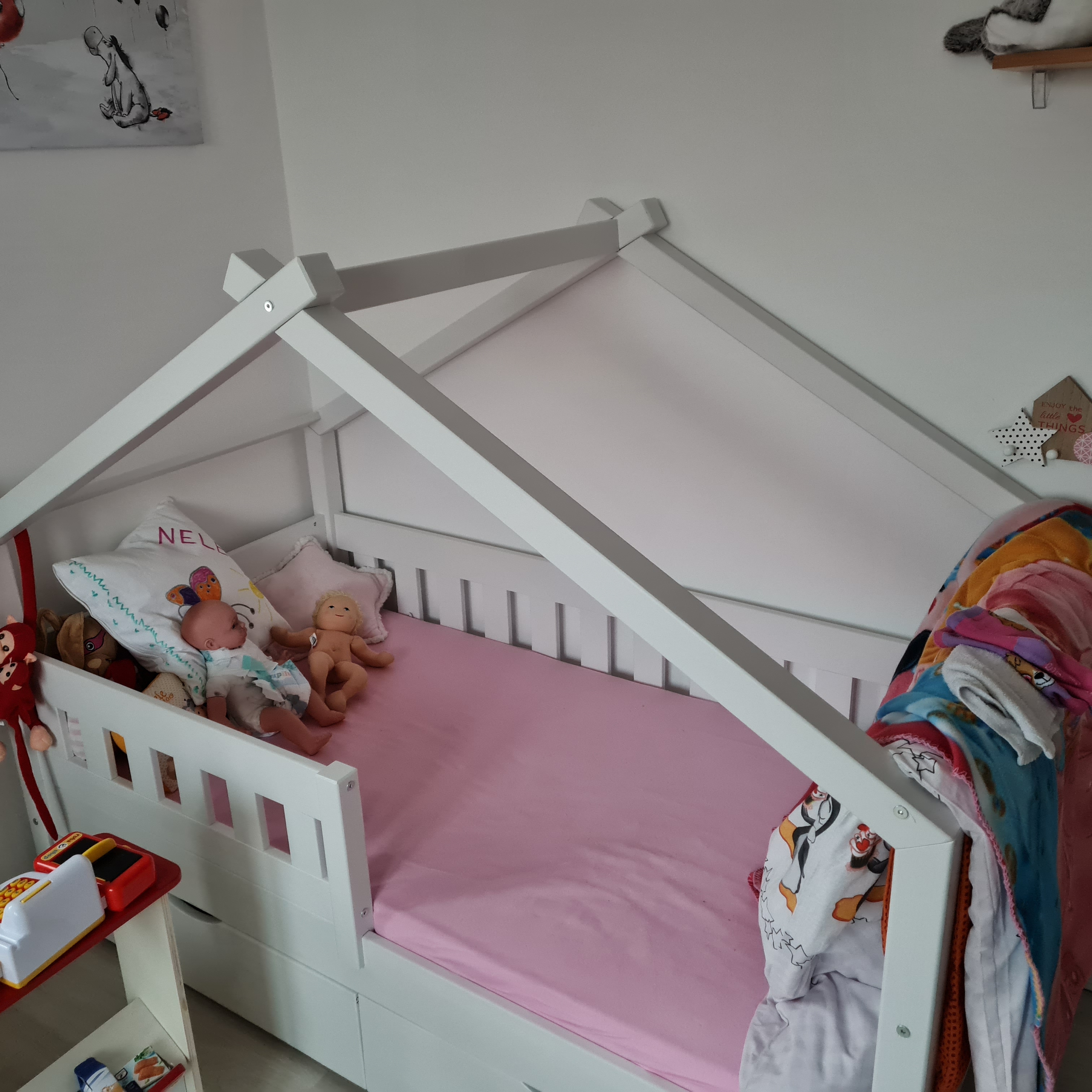 » Unsere Tochter liebt es. Es ist ihr eigenes kleines Reich wo sie schnell selbst rein und raus kommt wenn sie mal zur Toilette muss. Seither freut sie sich immer riesig aufs Bett weil alle ihre Kuscheltiere mit rein passen und sie es sich auch zum Bücher anschauen so richtig bequem machen kann.