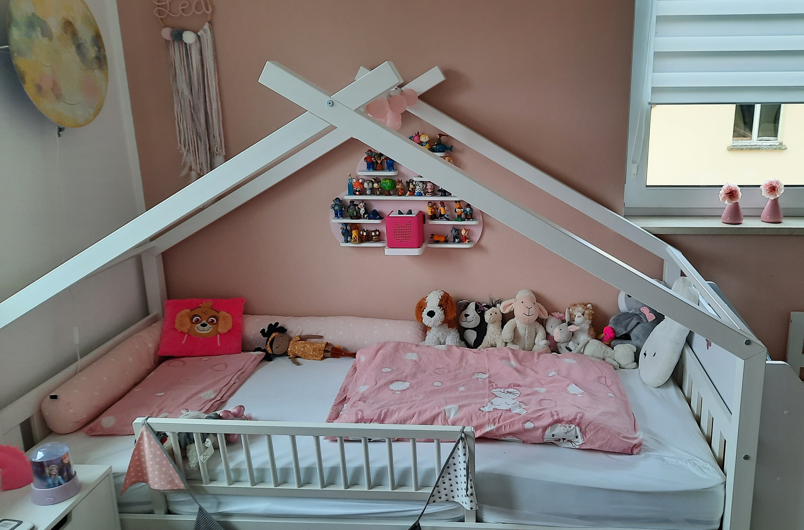 » Unsere Tochter liebt es, da sie so viel Platz für sich und ihre geliebten Kuscheltiere hat. Sie kann selber rein und raus und falls sie mal nicht gut schlafen kann, kann sich sogar noch jemand dazu legen ;)