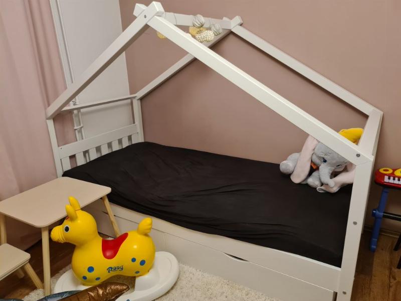 Optimales Design für ein Holzbett für das Kinderzimmer - eine gute Entscheidung für jedes Haus. Freude an der Benutzung garantiert.Dieses Bett aus Holz ist ein Highlight im Kinderzimmer. Es bietet einen fantasievollen Ort für Kinder, um ihre Kreativität auszuleben und überzeugt durch hohe Qualität.MAßE: Das Kinderbett ist passend für Matratzen 160 x 80 cm und hat eine Höhe von 134 cm. Die detaillierten Größen der einzelnen Teile sind auf den Fotos angegeben.MATERIAL: Das Spielbett für Kinder besteht aus natürlichem KiefernholzLIEFERUMFANG: Spielbett, Montageanleitung, Montagematerial, 2x Schubladen, Matratze.Das Hausbett ist mehr als nur ein Kinderbett aus Holz. Es ist ein Spielbereich und eine Quelle der Inspiration. Hier kann Ihr Kind seine Fantasie und Kreativität entfalten und in eine Welt voller Abenteuer eintauchen. Mit seinen zwei Schubladen und einer Matratze bietet dieses Holzbett für Kinderzimmer auch praktischen Stauraum. Es ist ein Highlight im Kinderzimmer und zieht alle Blicke auf sich. Das Bett ist von hoher Qualität und in verschiedenen Ausführungen und zusätzlichen Veredelungen erhältlich. Das Hausbett ist das perfekte Spielbett für Kinder und ein gemütlicher Ort zum Schlafen. Gönnen Sie Ihrem Kind dieses unverwechselbare Design und schaffen Sie ein Zuhause, in dem es sich wohlfühlt und sein eigenes Reich erkunden kann.---Technische Details:Farbe:WeißAbmessungen:80 x 134 x 160 cm (BxHxT)Material:Holz (Kiefer)Artikelgewicht inkl. Verpackung:50.1 kg.Artikelgewicht:47.13 kg.---LIEFERUMFANG: Spielbett, Montageanleitung, Montagematerial, 2x Schubladen, MatratzeDie Möbelserie "Design" bietet Spielbetten in Hausform für Kinder. Mit einer Vielzahl von Farbkombinationen und verschiedenen Konfigurationsoptionen bietet sie eine breite Auswahl an Möglichkeiten. Gestalten Sie den Schlafbereich Ihres Kindes mit den vielfältigen Optionen der Serie "Design" und schaffen Sie eine spielerische und gemütliche Umgebung.
