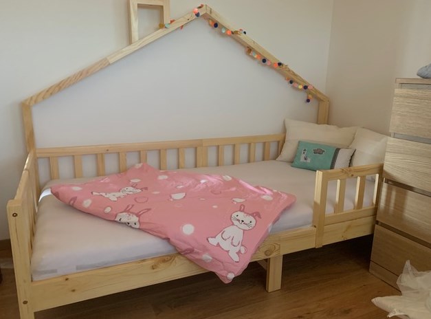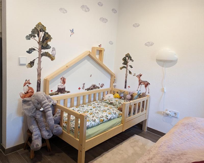 » Für meine Tochter war es Liebe auf den ersten Blick! Die hübschen und modernen Dachbalken in Hausform haben sie unheimlich begeistert. Mit ein paar Lichterketten dekoriert war das zeitlose Modell sofort ein richtiger Hingucker und unsere Maus wollte direkt alleine in dem neuen Bett schlafen. Ich denke die hübsche Optik hat den Anreiz gesetzt, dass sie endlich aus dem Babybett ausziehen wollte.