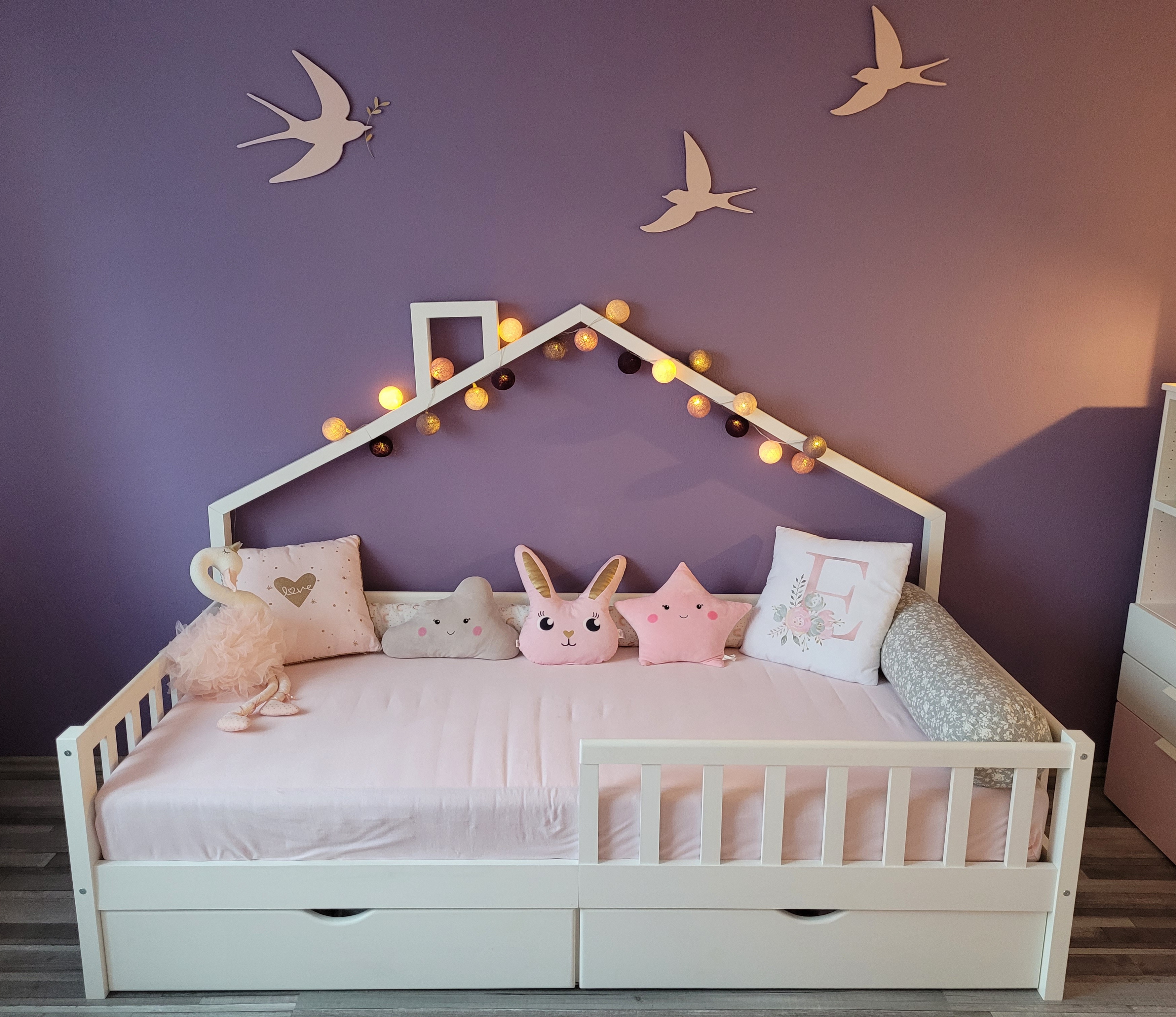 - LIEFERUMFANG: Hausbett, Kaltschaummatratze, Montageanleitung, Montagematerial, Schublade