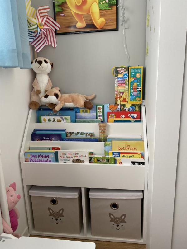 » Wir finden es super die Bücher direkt griffbereit zu haben und das egal welches Format darin seinen Platz findet. Die Fächer haben wir direkt für Spielzeugkisten genutzt und es ist ein optisches Highlight im Kinderzimmer unseres Sohnes.