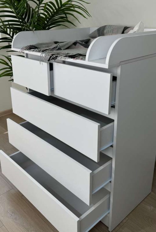 - Die Kommode mit Wickelaufsatz verfügt über 5 Schubladen. Wenn das Kind größer ist, kann sie als normale Kommode verwendet werden.
