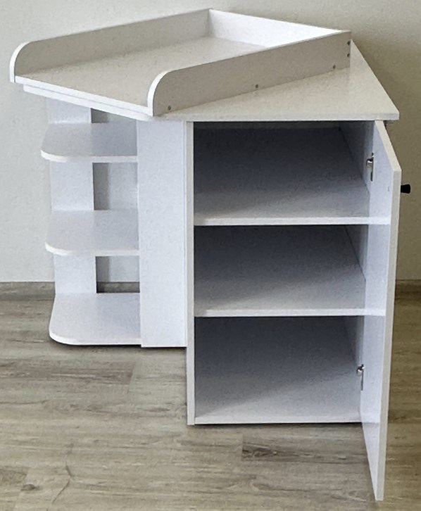 - MAßE: Der Baby-Wickeltisch, mit Tür und offenen Fächern, hat die folgenden Maße: Tiefe: 85 cm, Breite: 85 cm, Höhe: 77,3 cm.