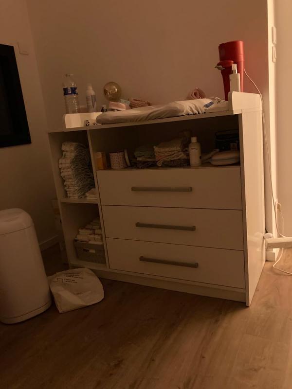 - Le meuble à langer est pratique car il peut être utilisé comme une poitrine de tiroirs après l'âge de bébé. Il est équipé de 3 tiroirs.