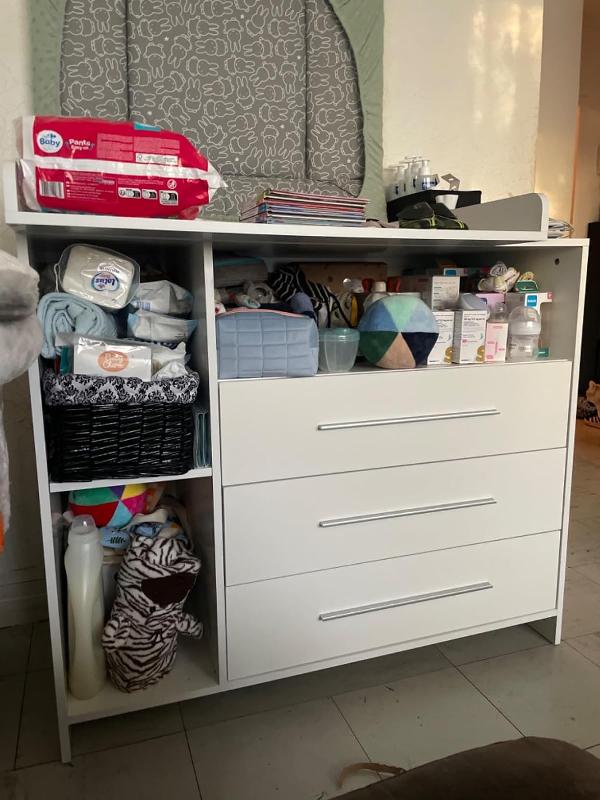 - La commode à langer avec 3 tiroirs convainc par le grand espace de rangement quelle offre. Létagère à langer intégrée permet un rangement pratique et organisé de tous les accessoires pour le change.