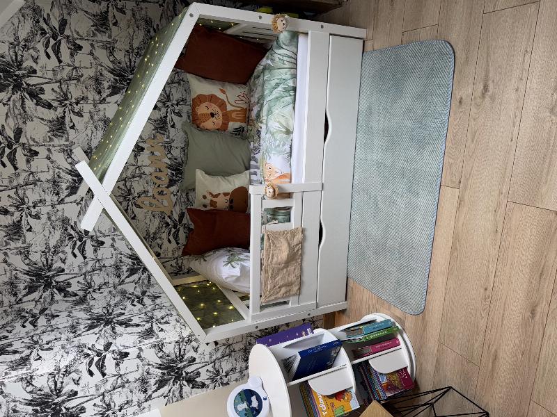 Le lit pour chambre d'enfants "Design" est le choix parfait pour chaque maison avec son design optimal et son apparence agréable. Votre enfant adorera l'utiliser.Le lit en bois est plus qu'un simple meuble, c'est un espace où les enfants peuvent s'épanouir en développant leur imagination et leur créativité. Cet élément incontournable de la chambre des enfants est également synonyme de qualité supérieure.DIMENSIONS : Le Lit enfant convient pour un matelas de80x160 cm et a une hauteur de 133,6 cm. Toutes les tailles détaillées sont indiquées sur les photos.MATÉRIAU: Le lit enfant avec toit est composé de bois de pin naturel.CONTENU DE LA LIVRAISON: Lit de jeu, 2x tiroir, Matelas, Instructions de montage, Matériel de montageLe lit cabane est un havre de paix pour les enfants. C'est un lit en bois qui s'adapte parfaitement à la chambre d'un enfant et lui offre une ambiance de jeu unique. Le toit ajoute une touche de fantaisie à l'espace de repos et deux tiroirs pratiques offrent un espace de rangement supplémentaire. Ce lit est plus qu'un simple endroit pour se reposer, il est un terrain de jeu pour l'imagination des enfants. Le design de haute qualité assure une longue durée de vie et le lit est disponible en différentes finitions pour s'adapter à différentes chambres d'enfant. Pourquoi offrir un simple lit à votre enfant lorsque vous pouvez lui offrir un lit cabane pour stimuler sa créativité ?---Données techniques:Couleur:BlancDimensions:80 x 133.6 x 160 cm (LxHxP)Matériau:Bois (pin)Poids net sans emballage:47.13 kg.Poids brut avec emballage:50.1 kg.---CONTENU DE LA LIVRAISON: Lit de jeu, 2x tiroir, Matelas, Instructions de montage, Matériel de montageLa série de meubles "Design" propose des lits de jeu en forme de maison pour les enfants. Avec une multitude de combinaisons de couleurs et différentes options de configuration, elle offre un large choix de possibilités. Aménagez l'espace de sommeil de votre enfant grâce aux nombreuses options de la série "Design" et créez un environnement ludique et confortable.